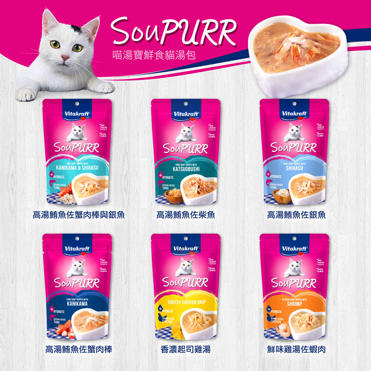 【產品介紹】:德國【Vitakraft】SouPURR 喵湯寶【高湯鮪魚佐蟹肉棒、銀魚】50g