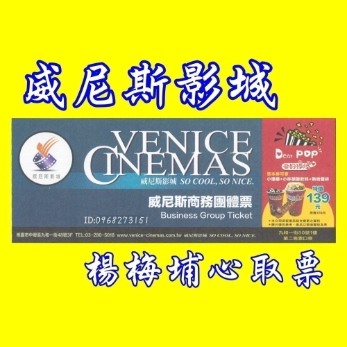 ★【威尼斯影城票價】(不分場次,平日假日皆可用)