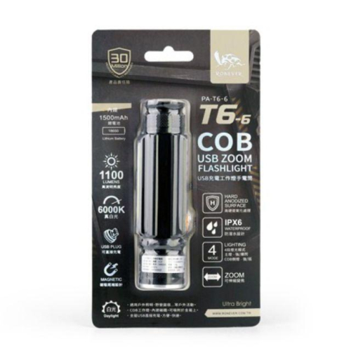 • 美國進口T6燈珠,最高亮度1100流明,使用壽命達10萬小時。