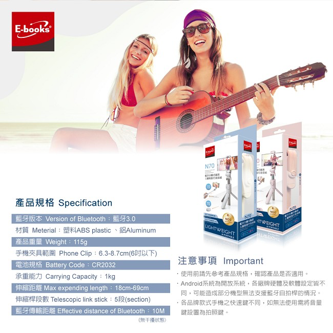 N70 藍牙分離式遙控三腳架旅行自拍組