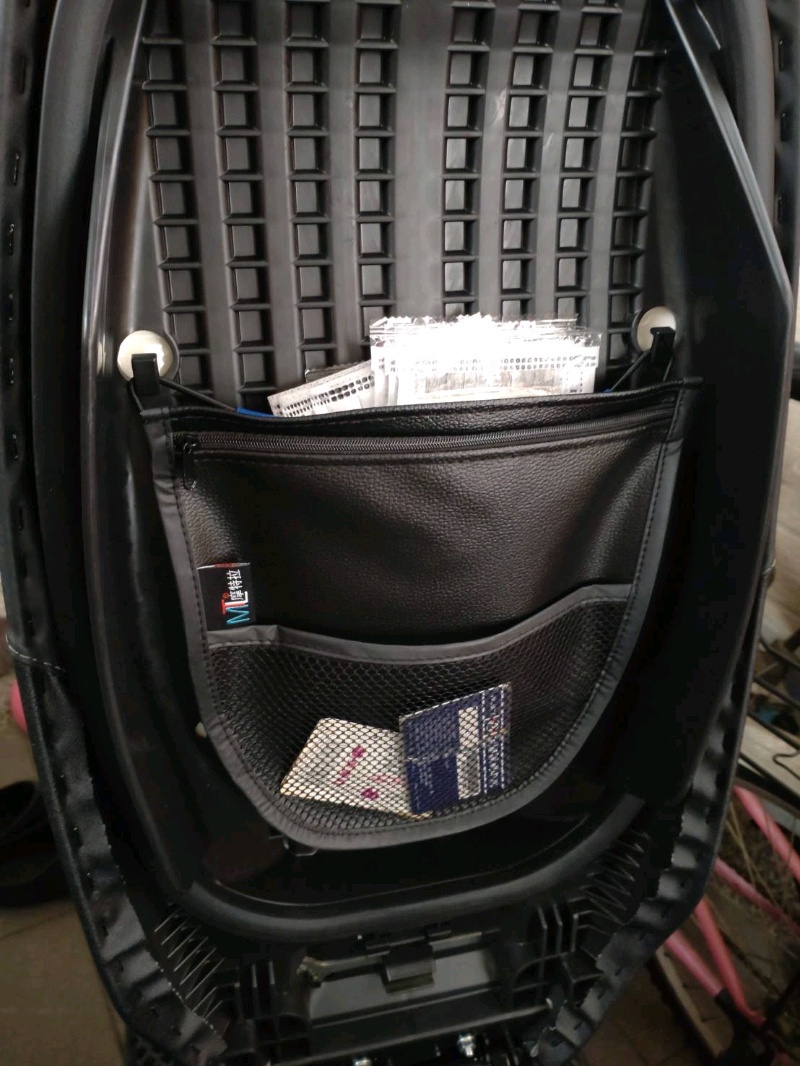 •原廠坐墊底殼已有開發掛勾,置物袋掛在角上即可。