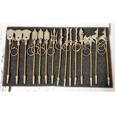 15個 二手年代物 兵器系列 長槍 戟 銀色 零件 擺飾 微景 擺件 A05 黑布面積24.2x14cm 參考大小 款式如圖 金屬零件 材質不詳 年代收藏品 難免有歲月的痕跡 部分可能有退色 彎曲 殘膠 退色等情形 不介意在購買 不要下標收到在那邊差評沒品