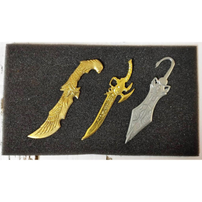 3個 二手年代物 兵器系列 大刀 刀 劍 金色 銀色 零件 擺飾 微景 擺件 A10