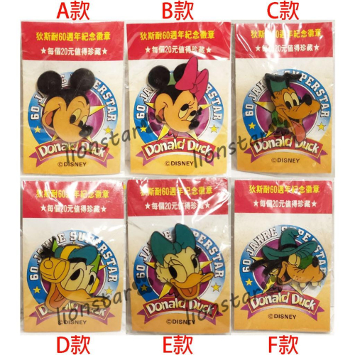 正版 迪士尼 60週年 徽章 別針 早期 紀念 狄斯耐 絕版 收藏 米奇 米妮 勳章 60周年 唐老鴨 布魯托 大頭系列
