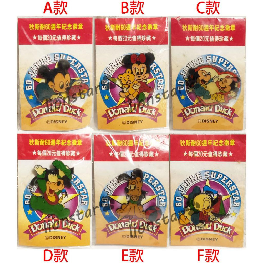 正版 迪士尼 60週年 徽章 別針 早期 紀念 狄斯耐 絕版 收藏 米奇 米妮 勳章 60周年 唐老鴨 布魯托 寶寶系列
