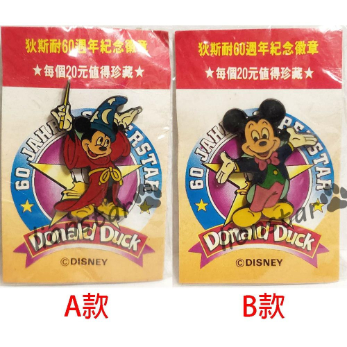 正版 迪士尼 60週年 徽章 別針 早期 紀念 狄斯耐 絕版 收藏 米奇 勳章 60周年 經典 米奇系列 魔法師 巫師