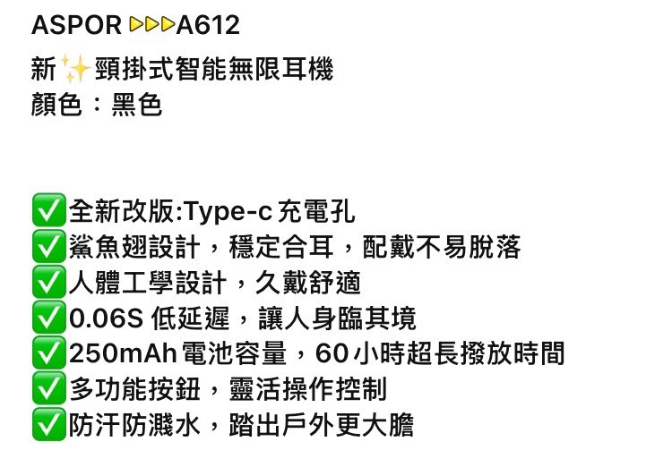 丞皇3C ASPOR A612 頸掛式智能無線耳機 藍芽耳機 記憶線圈 運動藍芽