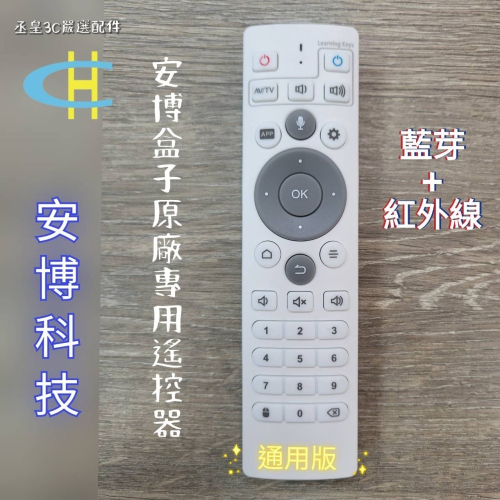 丞皇3C - 安博盒子第8/9/10/11代(X10/X11/X12/X18 Pro)藍芽+紅外線-原廠專用遙控器(白)
