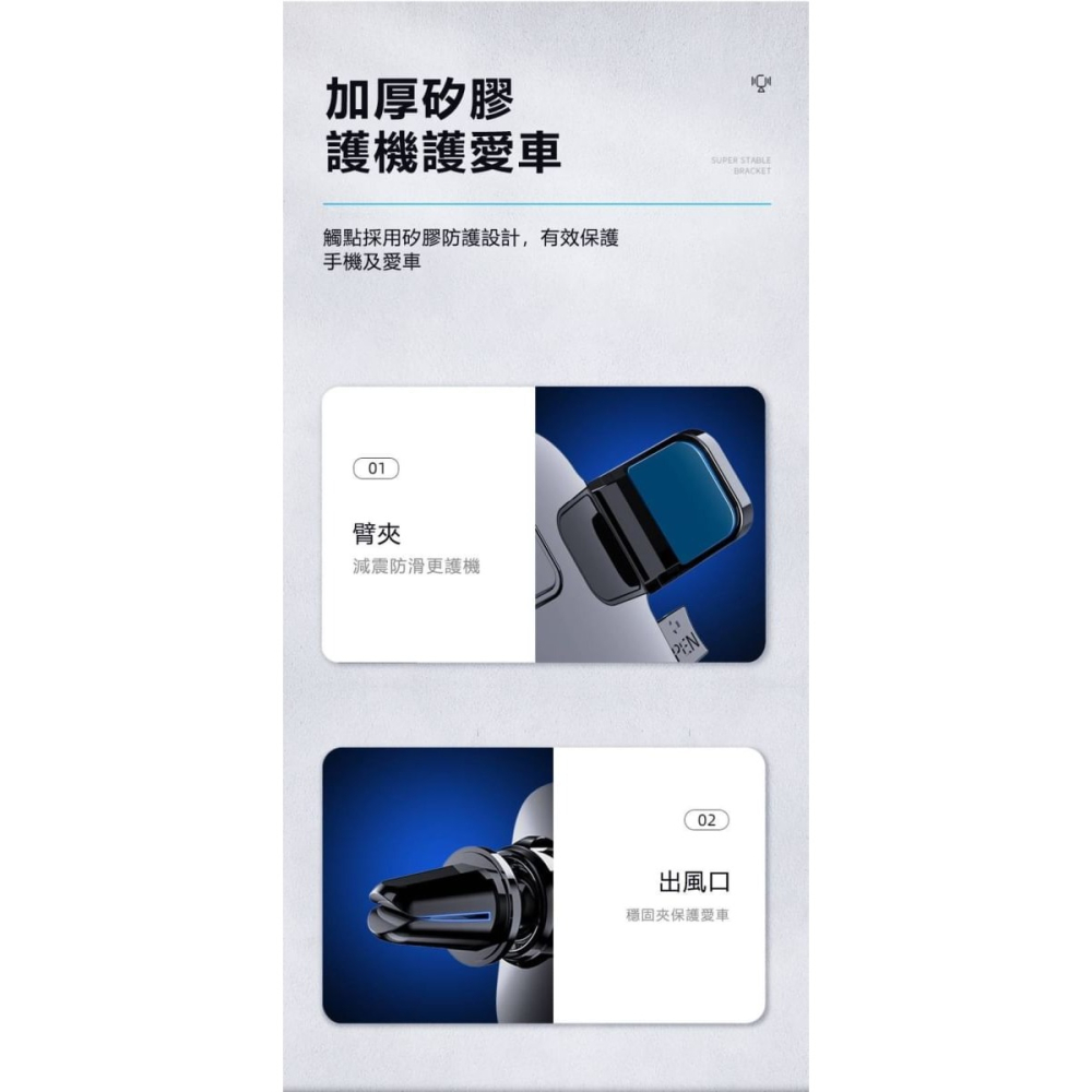 * 出風口適用,旋鈕式結構設計,輕輕一扭夾緊,一扭鬆開。