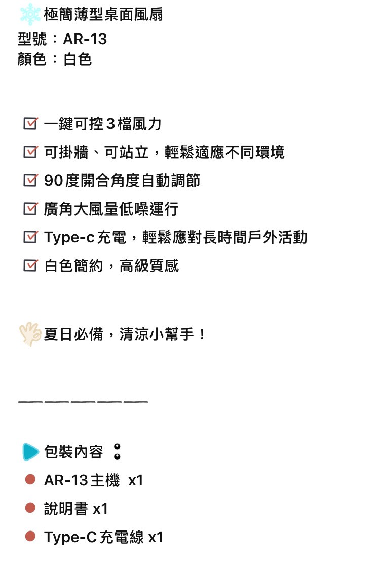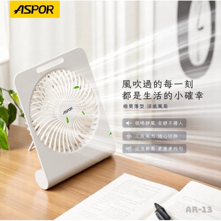 丞皇3C - ASPOR 極簡薄型桌面風扇 AR-13 顏色 白