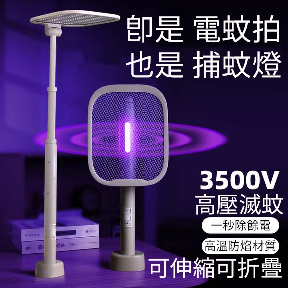 這支電蚊拍可伸縮,180度可折疊,仿生關節卡扣設計,還可以當成捕蚊燈使用。
