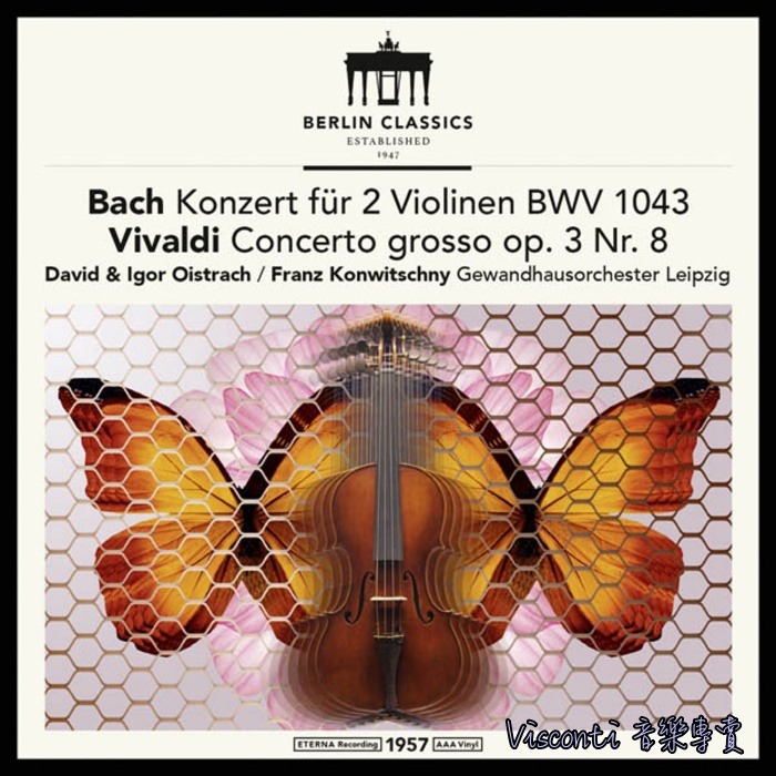 這些維瓦第的 A 小調大協奏曲(作品 3,第 8 號)和巴哈的 D 小調兩把小提琴協奏曲 BWV 1043 的錄音於 1957 年 4 月在萊比錫國會大廳使用德意志留聲機設備錄製。自 1947 年David & Igor Oistrach聯合首演以來,巴哈的《雙協奏曲》一直是他們聯合曲目中的中心作品,他們在多場音樂會上演奏了這首協奏曲,直到 1974 年David Oistrakh去世。