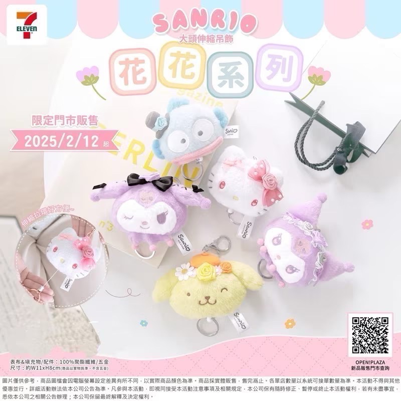 全新限量現貨+預購 7-11 三麗鷗 花花系列 大頭伸縮吊飾娃娃 kitty 布丁狗 美樂蒂 酷洛米