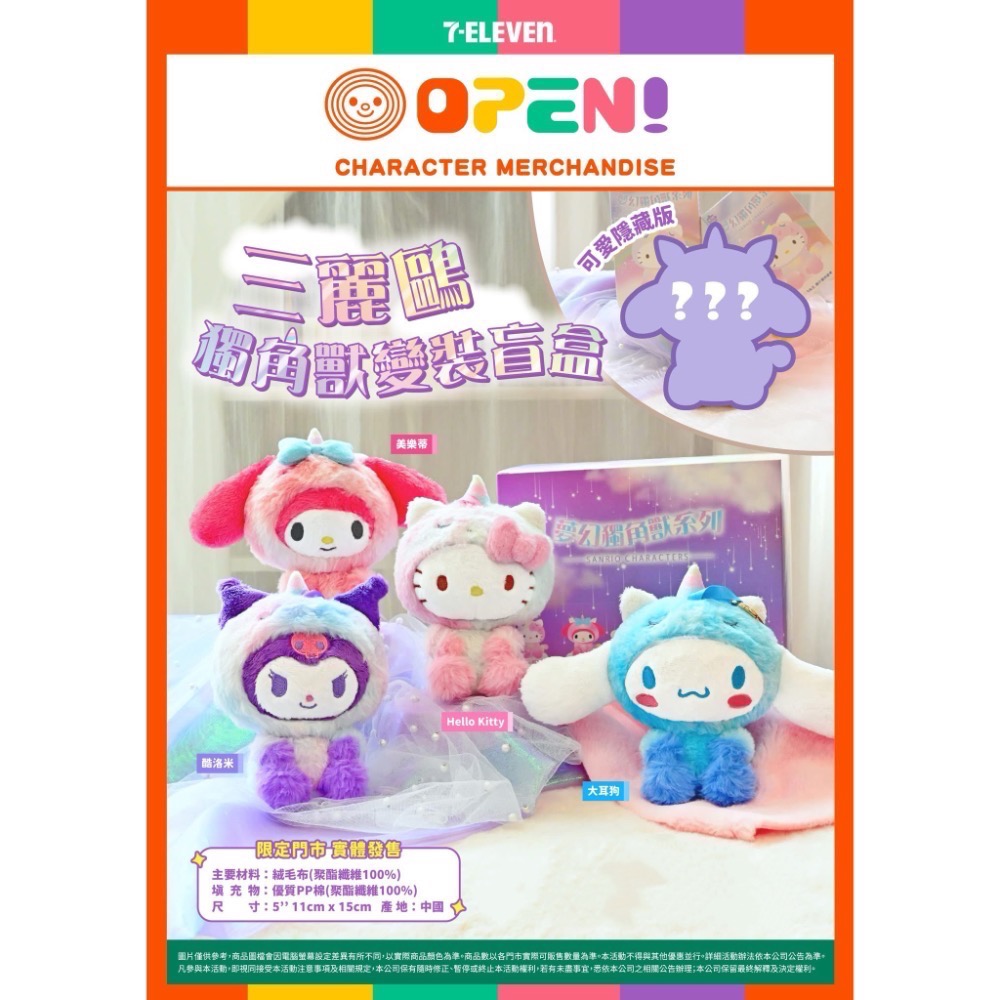 全新限量現貨 7-11 三麗鷗獨角獸變裝盲盒 大耳狗 Kitty 美樂蒂 酷洛米 布丁狗 隱藏款