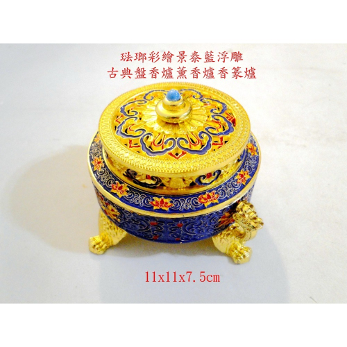 景泰藍彩色浮雕琺瑯彩繪仿古熏香爐6492