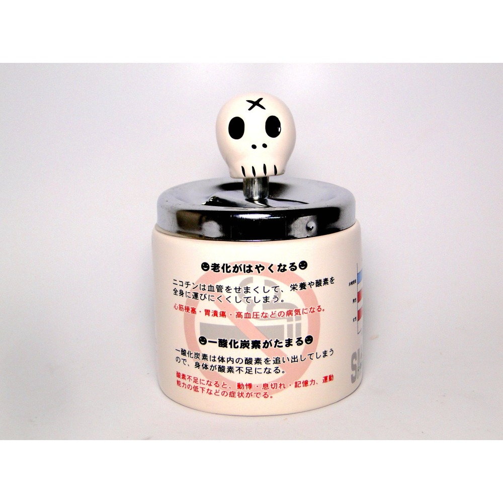 日本骷髏頭自動旋轉彈灰禁菸菸灰缸DSC00960