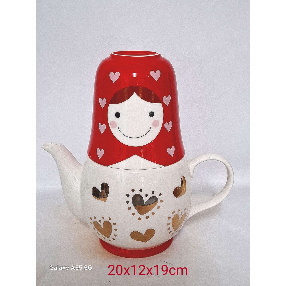 這款獨特的俄羅斯娃娃造型茶壺組,以鮮豔的紅色與純潔的白色為主色調,搭配可愛的愛心圖案,充滿童趣與溫馨。上方為一個可拆卸的茶杯,下方則是精緻的茶壺,設計巧妙,不僅實用,更可作為居家擺飾,為您的生活增添一份可愛的藝術氣息。適合個人品茗或送禮,讓每一次的茶飲時光都充滿愉悅。尺寸:20x12x19cm
