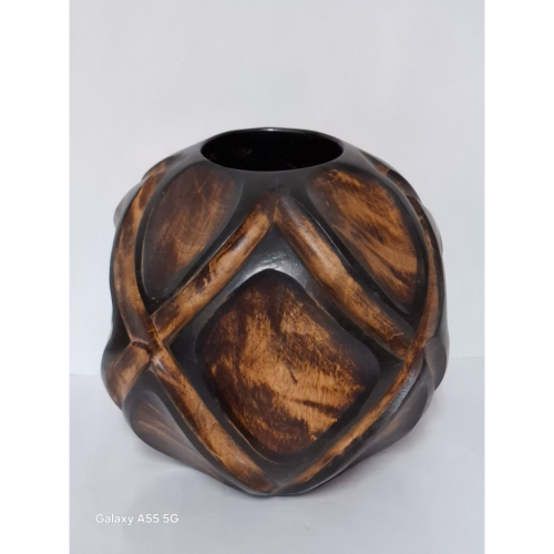 這是一款來自泰國的實木雕刻芒果木乾燥花瓶。其獨特的造型和天然的木質紋理,為您的居家空間增添一份自然與藝術氣息。尺寸約為18x18x18公分,重量約1280克,適合擺放乾燥花或作為裝飾品。 產地:泰國
