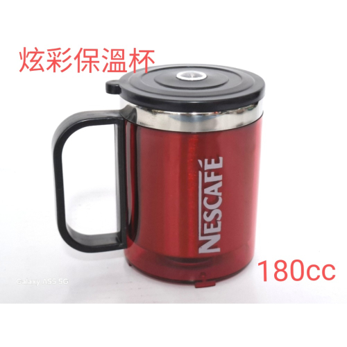 這款雀巢炫彩保溫杯是您日常飲品的理想選擇。採用優質材料製成,具有良好的保溫效果,讓您的飲品長時間保持溫熱。時尚的紅色外觀搭配黑色手把和杯蓋,設計簡潔大方。容量約180cc,輕巧便攜,適合辦公、居家或外出使用。杯身印有Nescafé標誌,是雀巢愛好者不可錯過的實用單品。