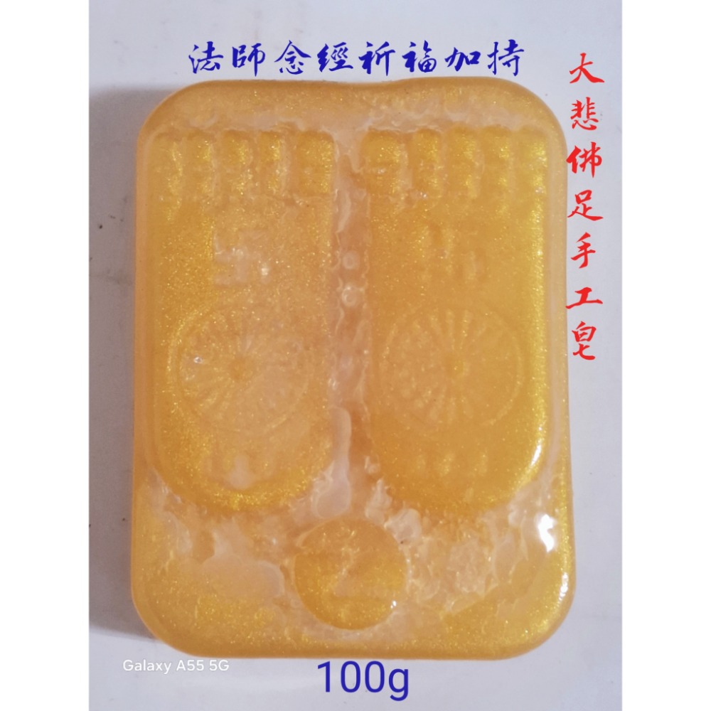 這款大悲佛足手工皂,由法師念經祈福加持,蘊含深厚祝福。皂體呈現莊嚴的佛足與手印圖案,金黃色澤閃耀,不僅是清潔用品,更是具有祈福意義的聖物。每塊重100克,質地溫和,適合日常使用,為您帶來身心潔淨與平安。 重量:109g左右 產地:台灣