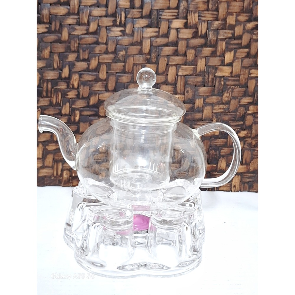 這款精美的玻璃茶壺套裝,包含一個耐熱玻璃茶壺、可拆卸玻璃濾茶器和一個玻璃保溫底座。透明設計讓您能欣賞茶葉舒展的美態,保溫底座則能讓您的茶水保持溫暖。是居家品茗或招待客人的理想選擇。