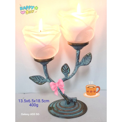 這款精美的雙玫瑰造型銅製燭台,以獨特的樹枝與葉片設計為基底,上方搭配兩朵盛開的玫瑰造型燈飾,營造出溫馨浪漫的氛圍。無論是居家擺飾、節慶裝飾或作為禮物,都能為空間增添優雅與光彩。尺寸約13.5x6.5x18.5公分,重約400克。 產地:台灣