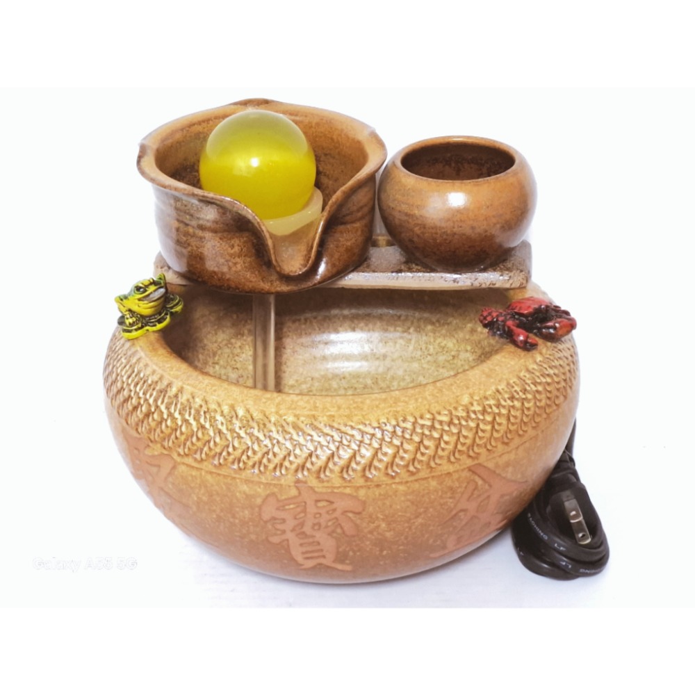 這款精緻的陶瓷流水聚寶盆擺件,以其獨特的設計和流動的水聲,為您的居家空間帶來寧靜與和諧。主體採用質感溫潤的陶瓷製成,搭配一顆黃色猫眼石滾動流水球,象徵財源滾滾。擺件上點綴著可愛的招財蟾蜍和螃蟹裝飾,增添了生動的趣味性。不僅是美觀的裝飾品,更是改善居家風水、舒緩壓力的理想選擇。適合放置於客廳、辦公室或玄關,營造舒適宜人的氛圍。 Size:23×23×19cm,/2400g 產地:台灣