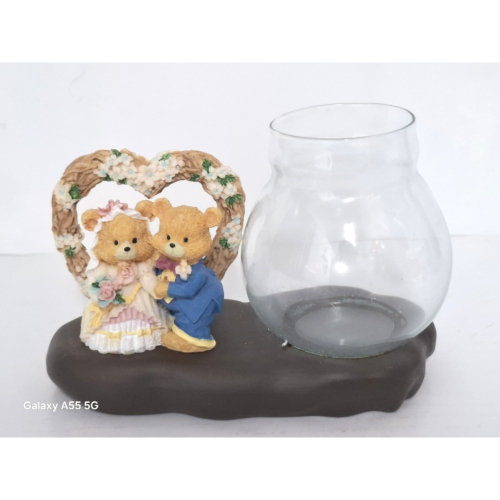 這款精緻的婚禮泰迪熊擺飾,以可愛的泰迪熊新郎新娘造型,搭配浪漫心形花環,並附有透明玻璃燭台或花瓶,雜物罐。是居家裝飾、婚禮禮物或情人節贈禮的絕佳選擇,為您的空間增添溫馨浪漫氛圍。