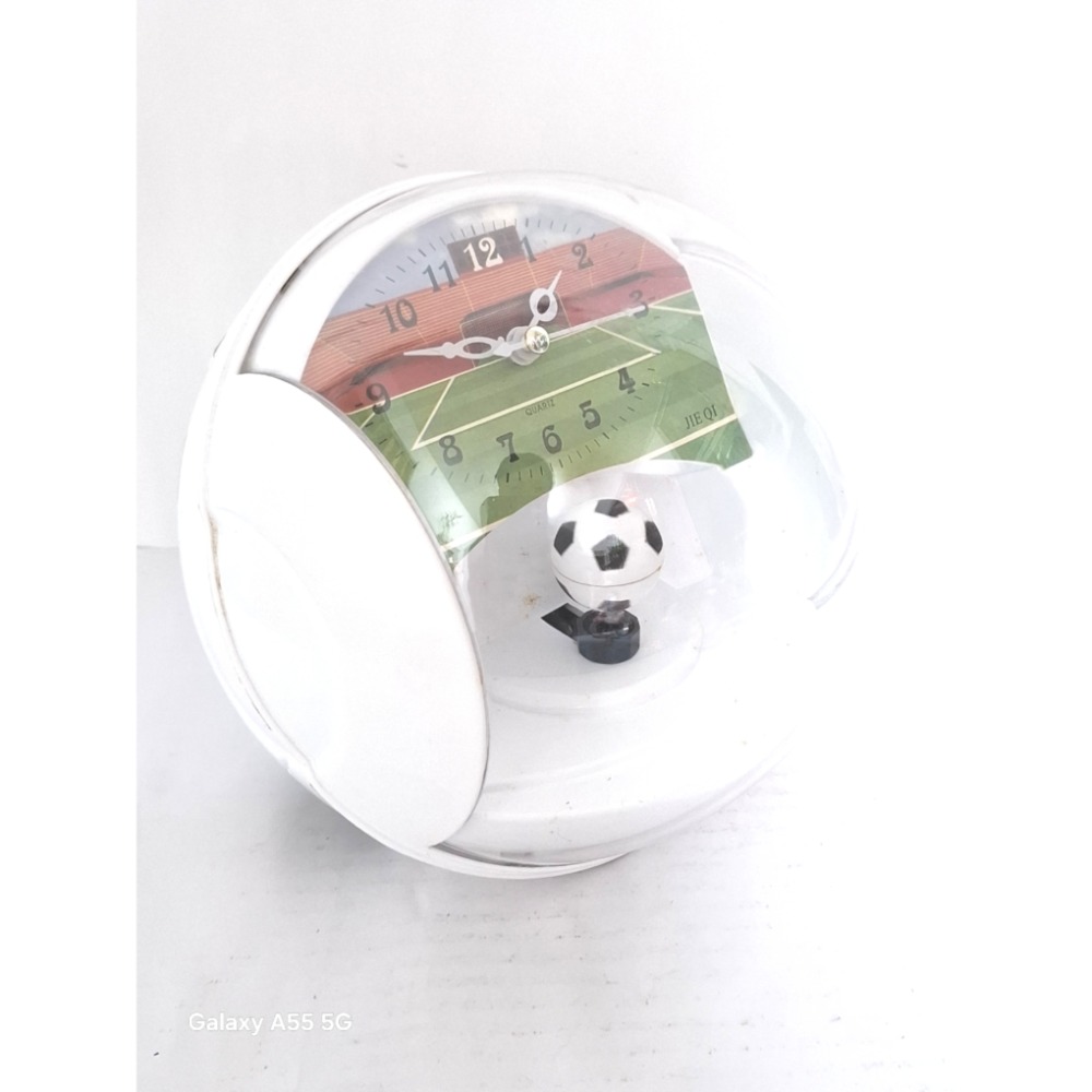 這款獨特的足球場造型鬧鐘,結合了運動與實用功能。透明外殼設計,內部是生動的足球場景,搭配可愛的會賺動的小足球裝飾,讓您每天早晨都能感受到球場的活力。清晰的時鐘面盤,準確報時,是足球迷或喜愛特色居家擺飾的您的理想選擇。無論是放在臥室、書房或辦公室,都能增添一份趣味與風格。 Size:11×11×11cm,/200g 左、右2邊都需要裝3號電池,時間、足球才會轉動。