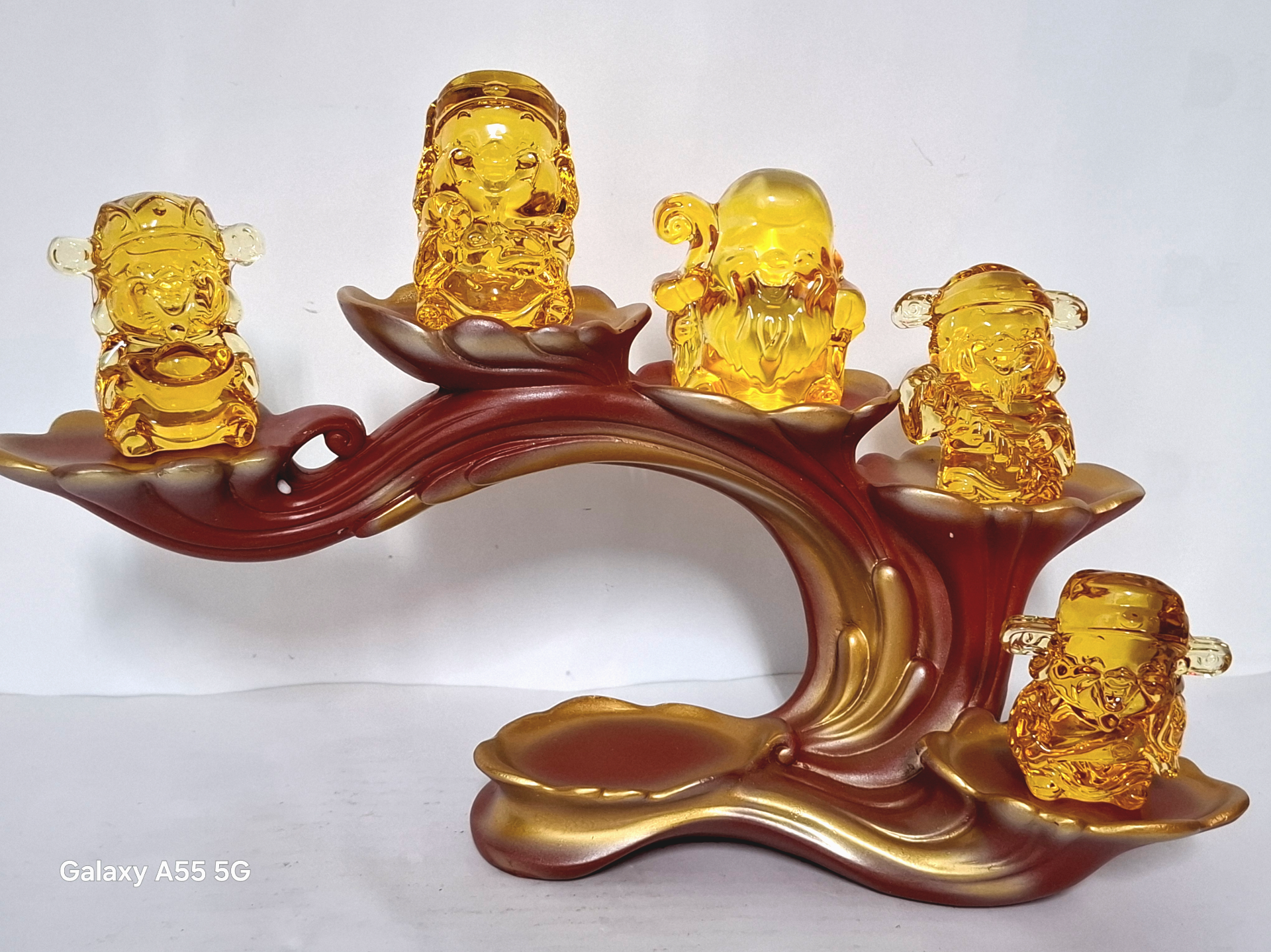 這款精緻的五路財神擺件,以溫潤透亮的黃水晶雕刻而成,結合了吉祥的福祿壽(財)寓意與強大的五方招財能量。是您家中、辦公室或店面不可或缺的開運利器。 商品特色: 五路聚財: 涵蓋東、南、西、北、中五方財氣,助您正財穩固,偏財興旺,將四面八方的財富通通迎入家門。 黃水晶主財: 黃水晶(或稱黃玉/琉璃)在風水學中象徵太陽之光,主偏財運與智慧財,能強化氣場中的財富能量,帶來豐盛與喜悅。 造型生動討喜: 財神爺形態圓潤飽滿,面帶微笑,寓意財源滾滾、貴氣盈門。底座仿若聚寶盆樹幹,穩固地承載財運,設計精巧,極具收藏價值。 吉祥寓意: 標示「福祿壽財」,不僅招財,更代表了福氣、高官、長壽的美好祝福,為您帶來全方位的興旺運勢。 📐 擺放建議: 居家: 放置於客廳財位(通常是進門斜對角),照亮財運前程。 辦公室/店面: 擺放在櫃檯或辦公桌的左手青龍位,助您事業蒸蒸日上,客戶絡繹不絕。 ✨ 迎請「黃水晶五路財神擺飾」,立即啟動您的財富磁場! 💡 為什麼非買不可? ✅ 一次到齊!:五尊財神一體成型,全面招攬正財、偏財、事業、人脈、健康五路財富。 ✅ 光芒萬丈!:金黃透亮的黃水晶材質,象徵財富累積與貴氣,擺在哪裡都是一道亮麗的風景,瞬間點亮您的財位。 ✅ 吉祥滿溢!:「福祿壽財」四字祝福,不僅要您有錢,還要您有福氣、有地位、身體康健,是送禮自用兩相宜的頂級開運好物!