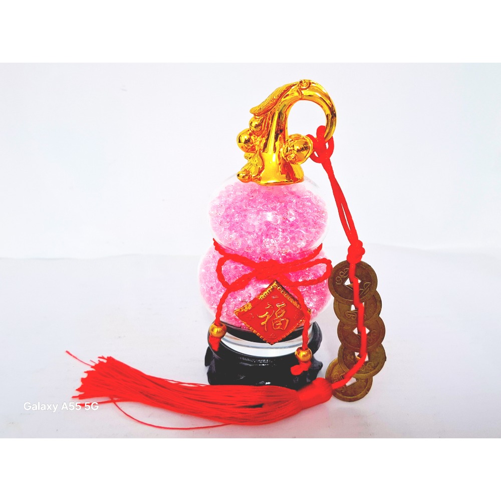 精緻葫蘆造型,內含粉晶,搭配古銅錢與流蘇,招財開運。Size:7×7×15cm,/190g