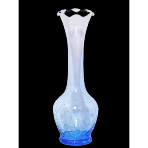復古風格的藍色裂紋玻璃花瓶,瓶口呈波浪狀,瓶身有獨特的裂紋設計,適合居家裝飾或插花。 產地:台灣