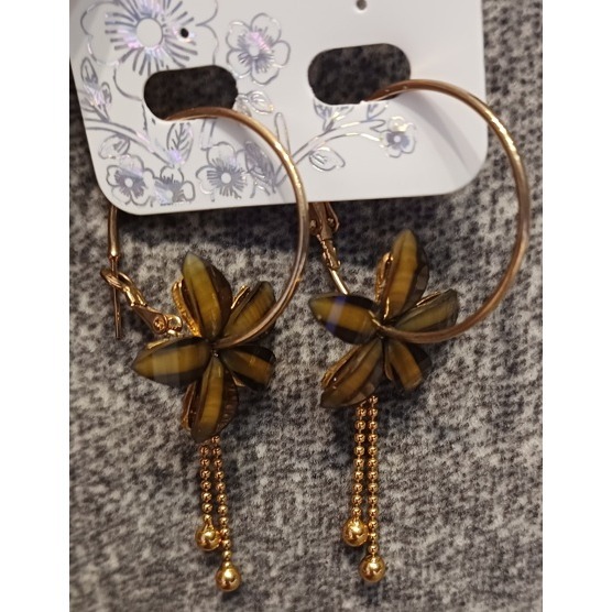 簡單大方好搭配的造型耳環_氣質茶褐黃