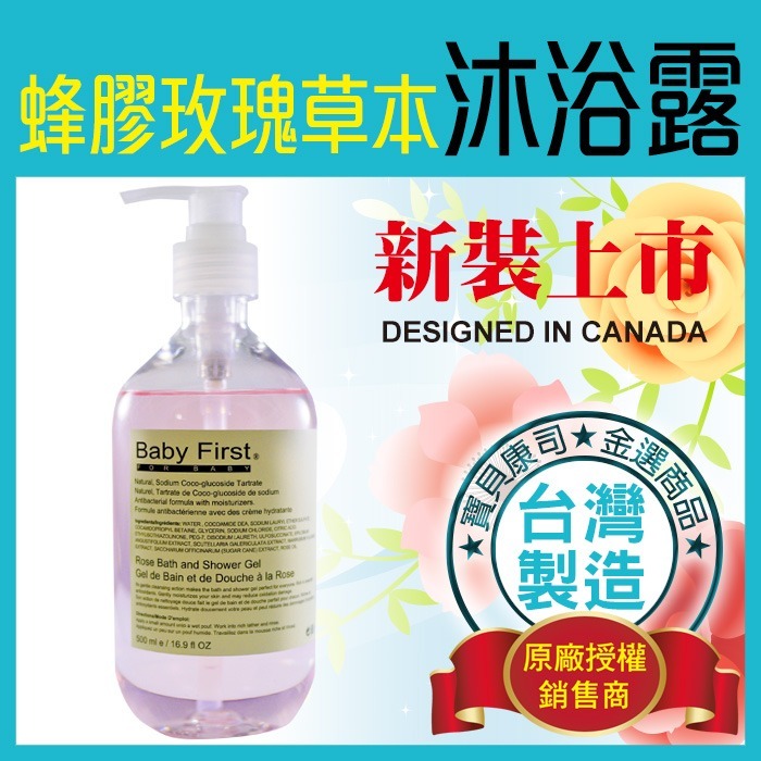【Baby First】蜂膠玫瑰草本 嬰兒/兒童沐浴露(500ml) 不流淚配方 沐浴乳 沐浴精【寶貝康司】