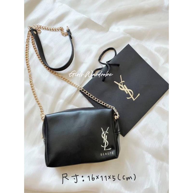 【𝐆𝐢𝐫𝐥𝐬.𝐖𝐚𝐫𝐝𝐫𝐨𝐛𝐞歐洲正品代購】YSL聖羅蘭專櫃VIP會員黑色皮革化妝包 改造鍊條包 斜背包
