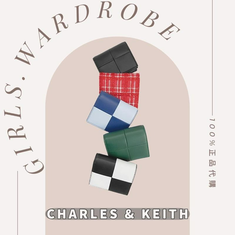 現貨🔥【𝐆𝐢𝐫𝐥𝐬.𝐖𝐚𝐫𝐝𝐫𝐨𝐛𝐞新加坡小CK正品代購】十字拼接皮革 毛呢短夾 CK6-10770585