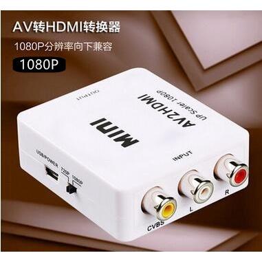 【產品名稱】AV轉HDMI轉換器 複合音視頻(CVBS)轉HDMI紅黃白蓮花轉HDMI 【產品尺寸】66(L)x55(W)x20mm 【產品介紹】 AV轉HDMI信號轉換器,可將AV(CVBS)複合視頻信號及FL/FR立體聲音頻信號轉換為HDMI數字信號,使普通DVD,攝像機等的複合音視頻信號倍增至高清HDMI信號輸出,便於連接液晶電視,高清顯示器等。 【產品功能】 輸入信號格式:AV(紅黃白) cvbs 複合音視頻。 輸出信號:HDMI 1080P 60HZ/720P 60HZ。 支持視頻輸入製式:PAL,NTSC3.58,NTSC4.43,SECAM,PAL/M,PAL/N。 兼容HDCP協議。 電源:如供電不足USB供電(5V) 【產品規格】 產品類型:迷你型AV轉HDMI轉換器 接口類型:1路AV輸入,1路HDMI輸出 尺寸:約66(L)x55(W)x20mm 顏色:白色 重量:40g 配線長:迷你USB電源線1米左右