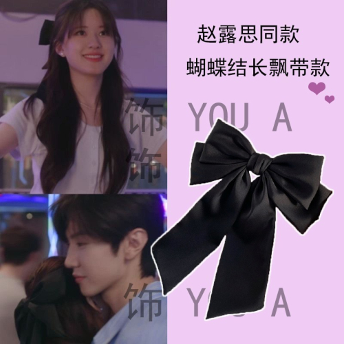 台灣出貨✨現貨 黑色大蝴蝶结髮夾 趙露思同款 桑稚同款 綢緞感 長款髮帶 頂夾彈簧夾 偷偷藏不住髮飾 黑色髮夾 蝴蝶結