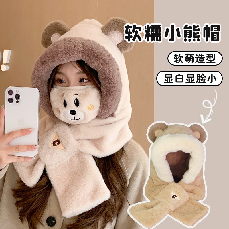產品名稱:保暖QQ小熊耳朵連帽圍巾
