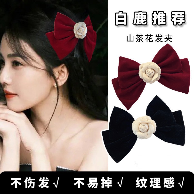 產品名稱:山茶花絲絨大號蝴蝶結髮夾