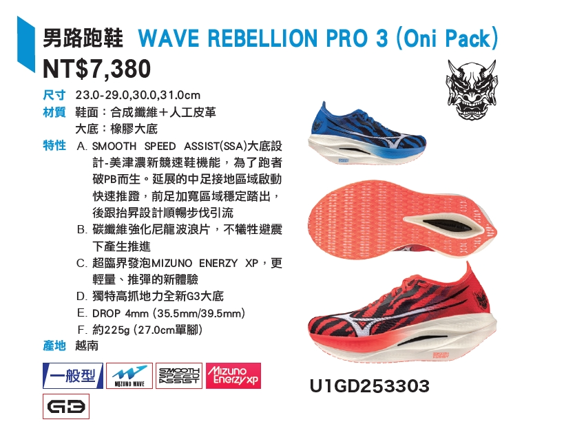 美津濃 MIZUNO WAVE REBELLION PRO 3 Oni Pack 男款路跑鞋 U1GD253303