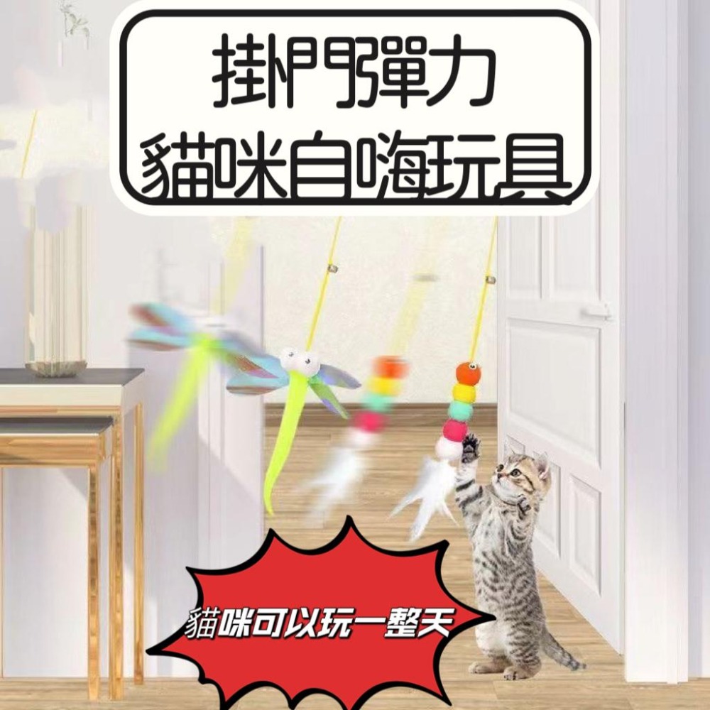 【台灣現貨】ig同款🔥彈力逗貓棒毛毛蟲 掛門彈力繩逗貓玩具 自嗨貓玩具 掛門逗貓棒 逗貓玩具 貓咪玩具 寵物玩具