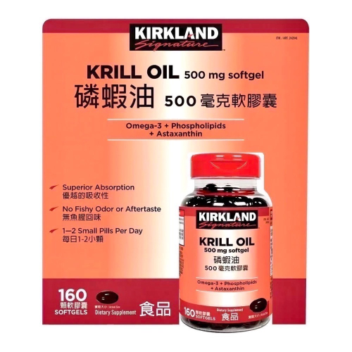 Costco好市多 Kirkland 科克蘭 磷蝦油 500毫克 軟膠囊 160顆 krill oil 500mg