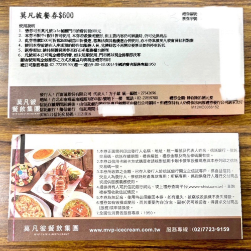 此券恕無法與其他優惠合併使用,亦不得累積莫凡彼會員紅利點數