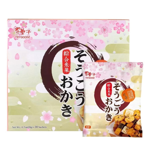 豐富獨特的組合:海苔捲、小米酥、醬燒米果、烘烤杏仁