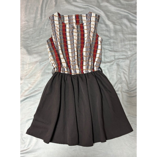 簡約時尚個性狀色格子洋裝 無袖洋裝 短洋