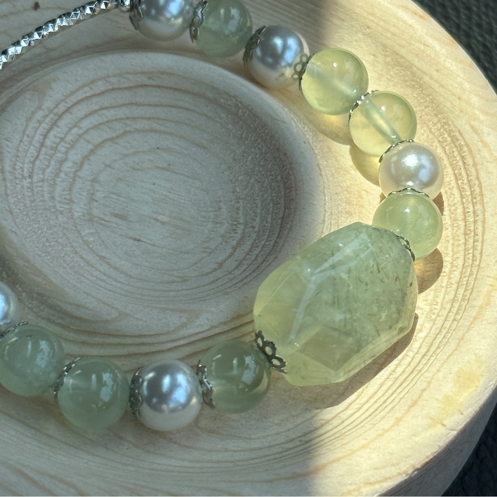 品名:方形綠橄欖石珍珠手鍊