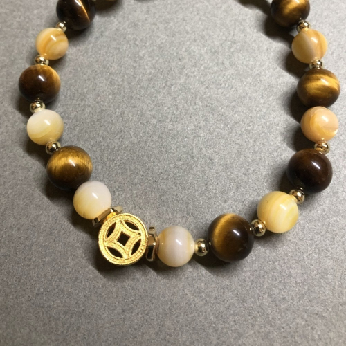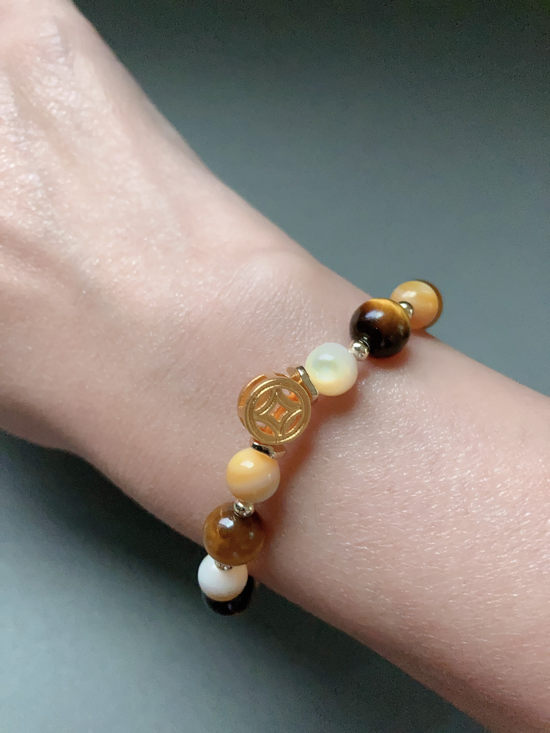 招財雙錢虎眼黃貝玉手鍊 吸引財富與好運