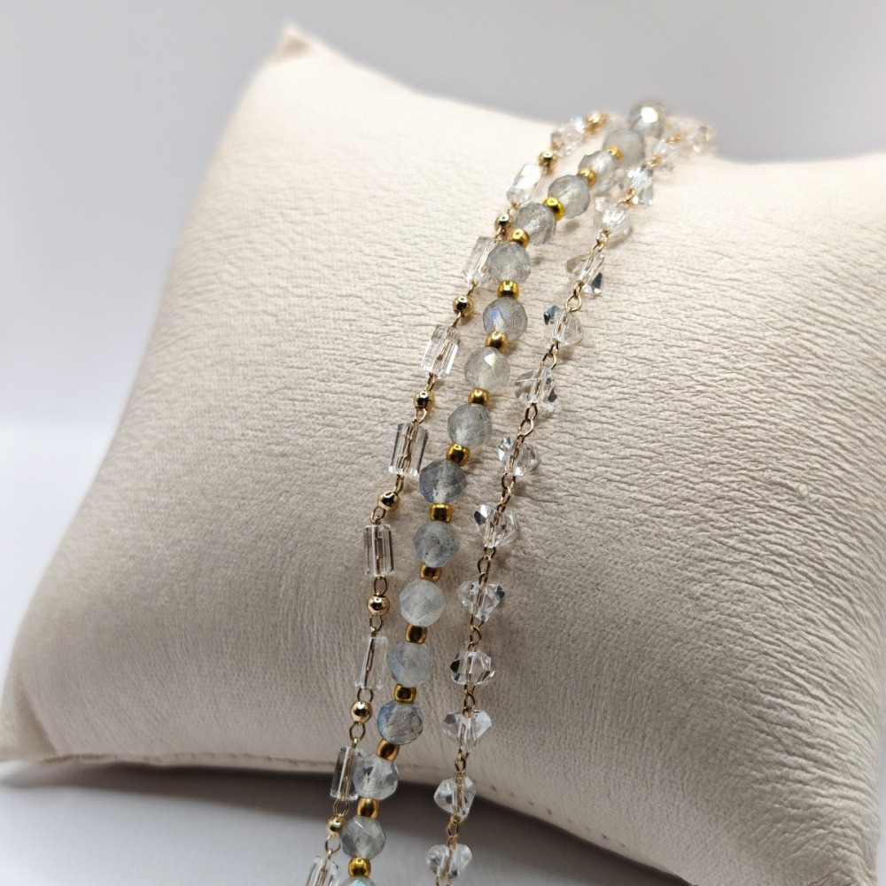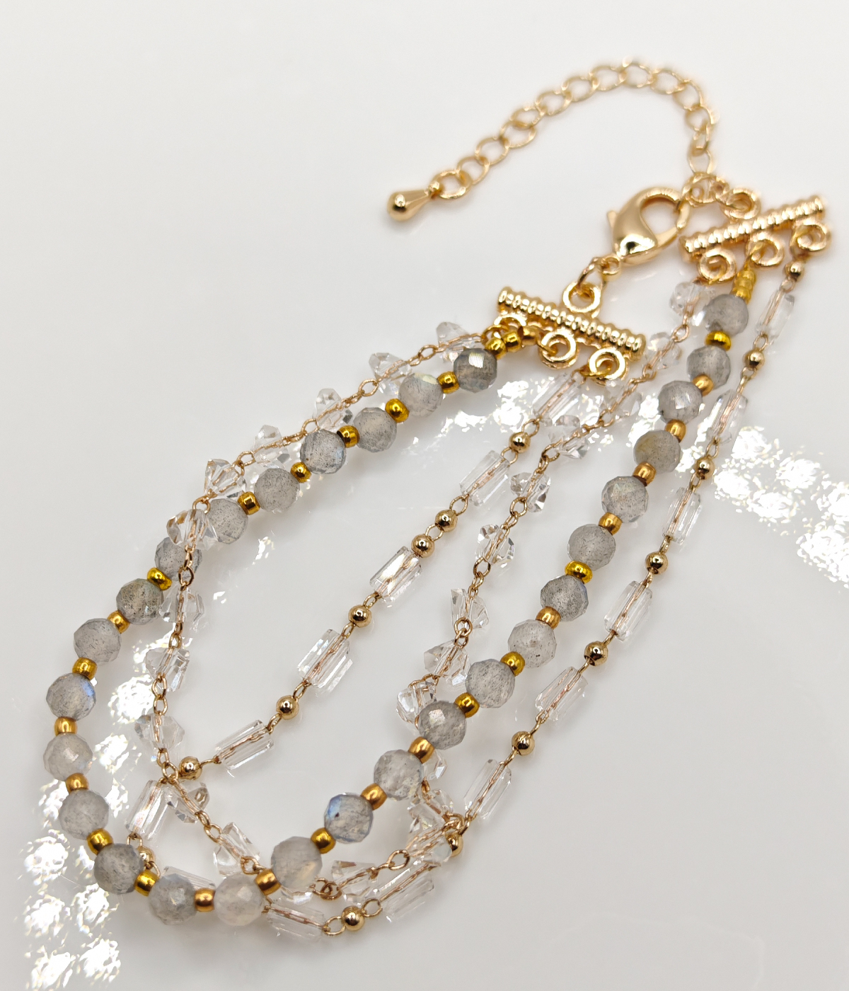 藍灰月光石水晶月夜輝光手鍊:神秘與優雅的象徵