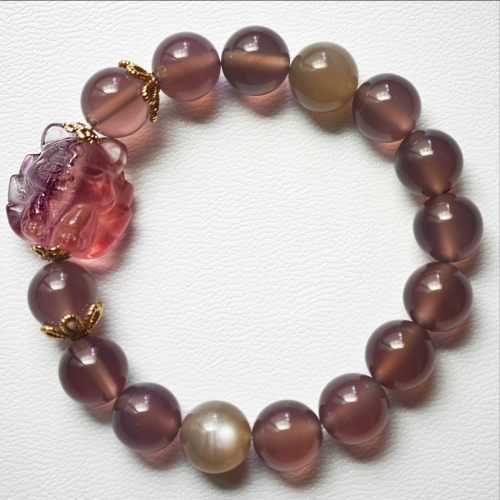 精美的九尾狐雕刻。九尾狐自古以來便象徵著智慧、魅力與靈性的守護。將九尾狐的神秘力量與紫煙玉結合,不僅能加強您的心靈能量,還能為您帶來更多的人際吸引力和情感運勢。這款水晶手鍊不僅是提升靈性成長的良伴,也能助您在人際關係中更加自信、魅力四射。